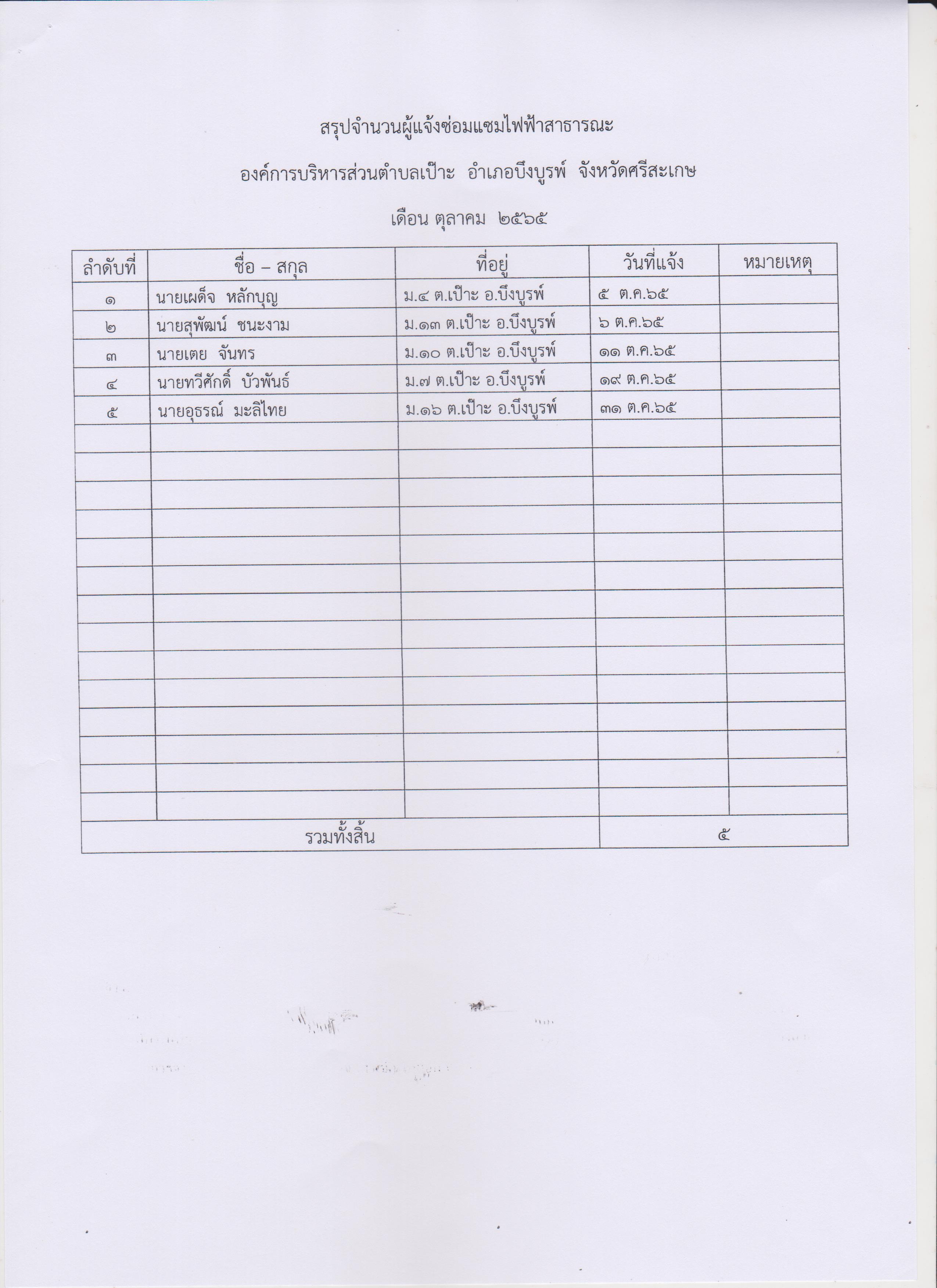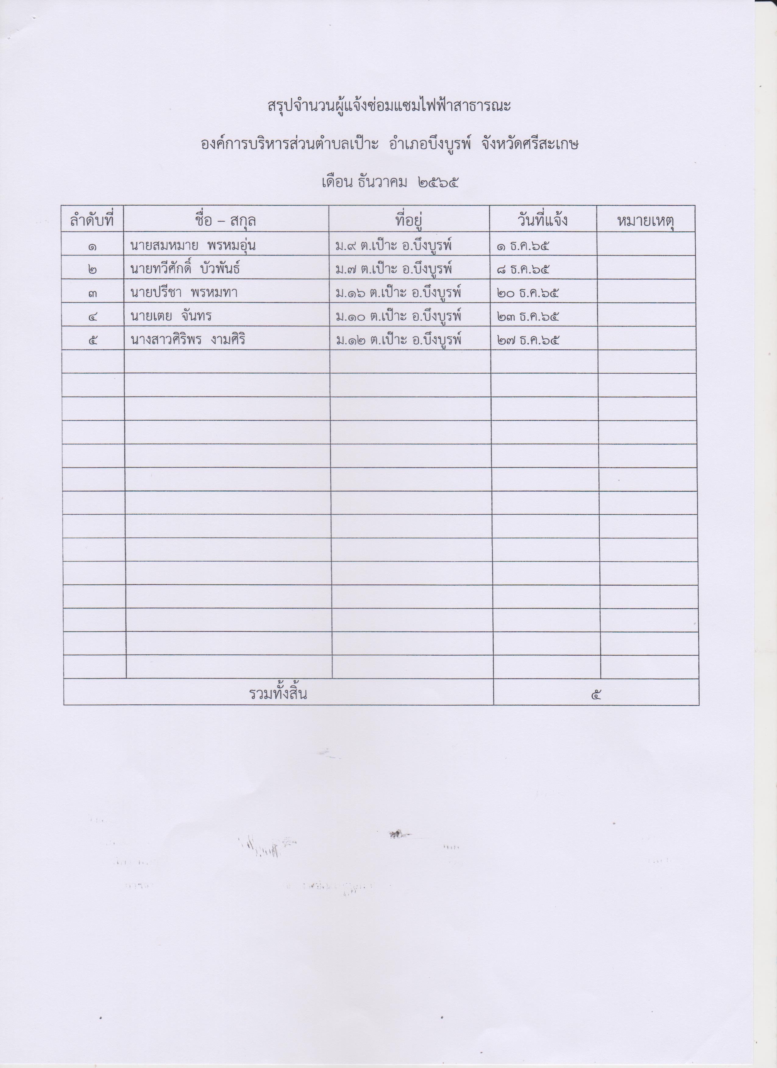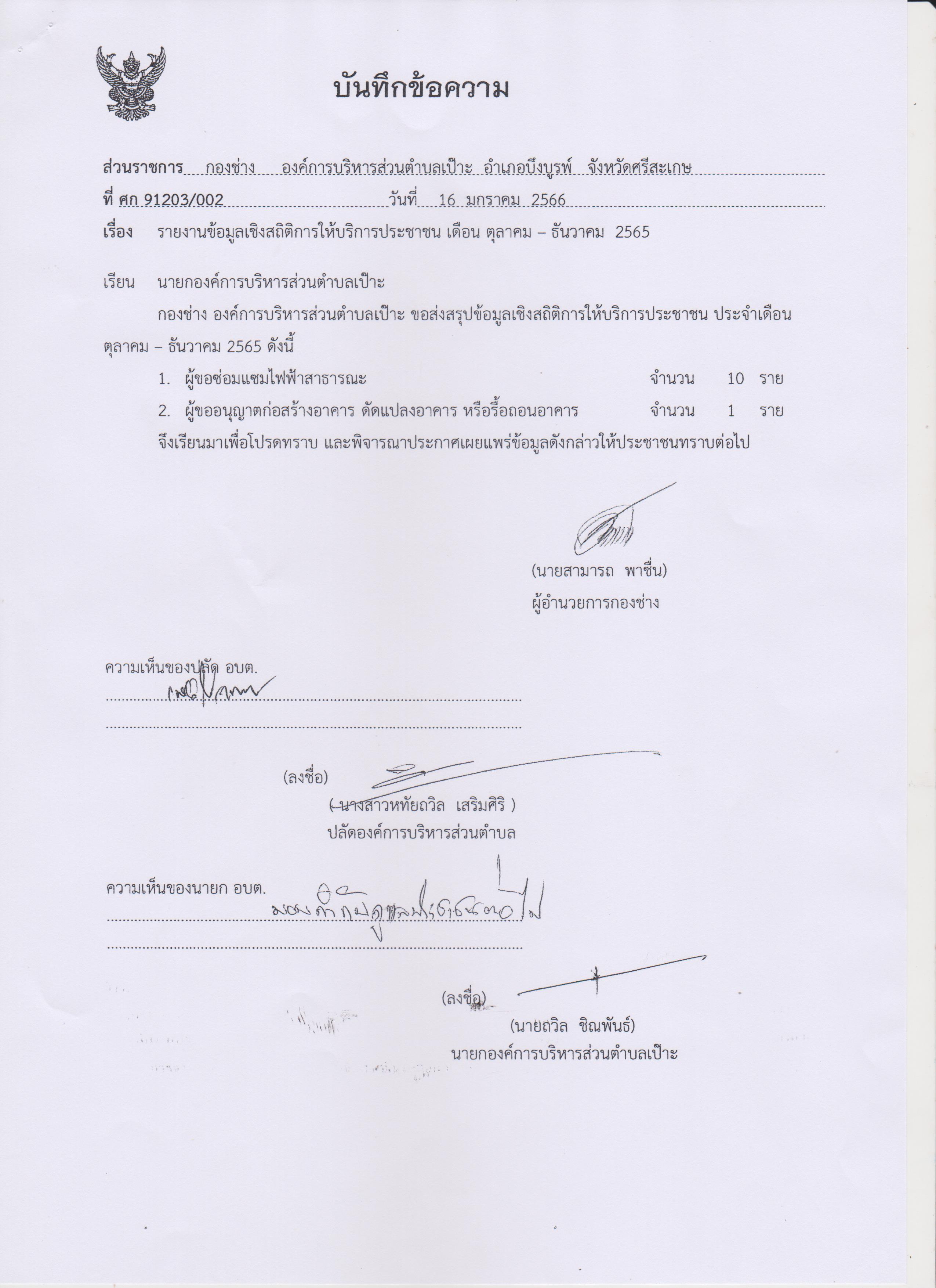สถิติการให้บริการประชาชน กองช่าง ต.ค.-ธ.ค.65